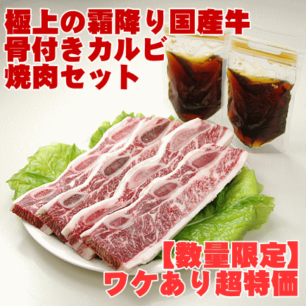本品のみの場合、冷凍発送いたします。 白菜キムチなどの野菜系キムチとの同梱を希望され る場合は冷蔵でお届けしますが、その場合、到着日 の翌日までにはお召し上がり下さい。 ■お肉を解凍後、もみダレで味付けする だけで手軽に本格焼肉が楽しめます。 ワケあり国産牛の 極上霜降り骨付きカルビ 焼肉セット (骨付きカルビ500g、 もみダレ200g) 大型焼肉店さんからの契約を急に打ち切られたため、在庫を抱えて業者さんが赤字価格で卸してくれた、極上の霜降り国産牛の骨付きカルビ肉に、鶴橋人気店「串まつ屋」さんのレシピで作った業務用のタレをセットでお届け。 極上肉に行列ができるお店のタレで食べるその味は、き